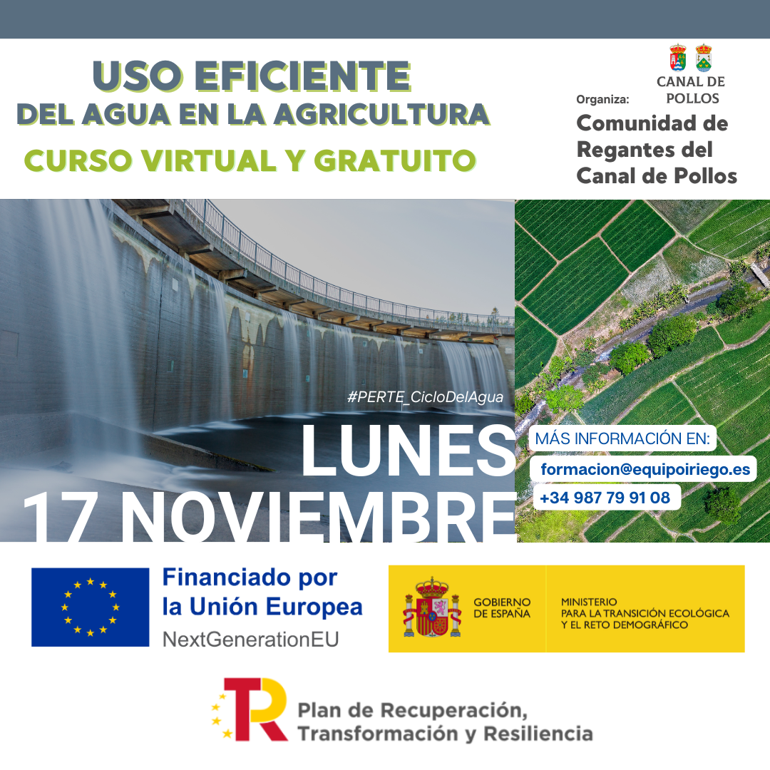 Modalidad: Virtual y gratuito. Este curso se enmarca en las acciones del Plan de Recuperación, Transformación y Resiliencia, financiado por la Unión Europea- NextGenerationEU, y forma parte de la primera convocatoria de los Proyectos Estratégicos para la Recuperación y Transformación Económica, PERTE de Digitalización del Ciclo del Agua.