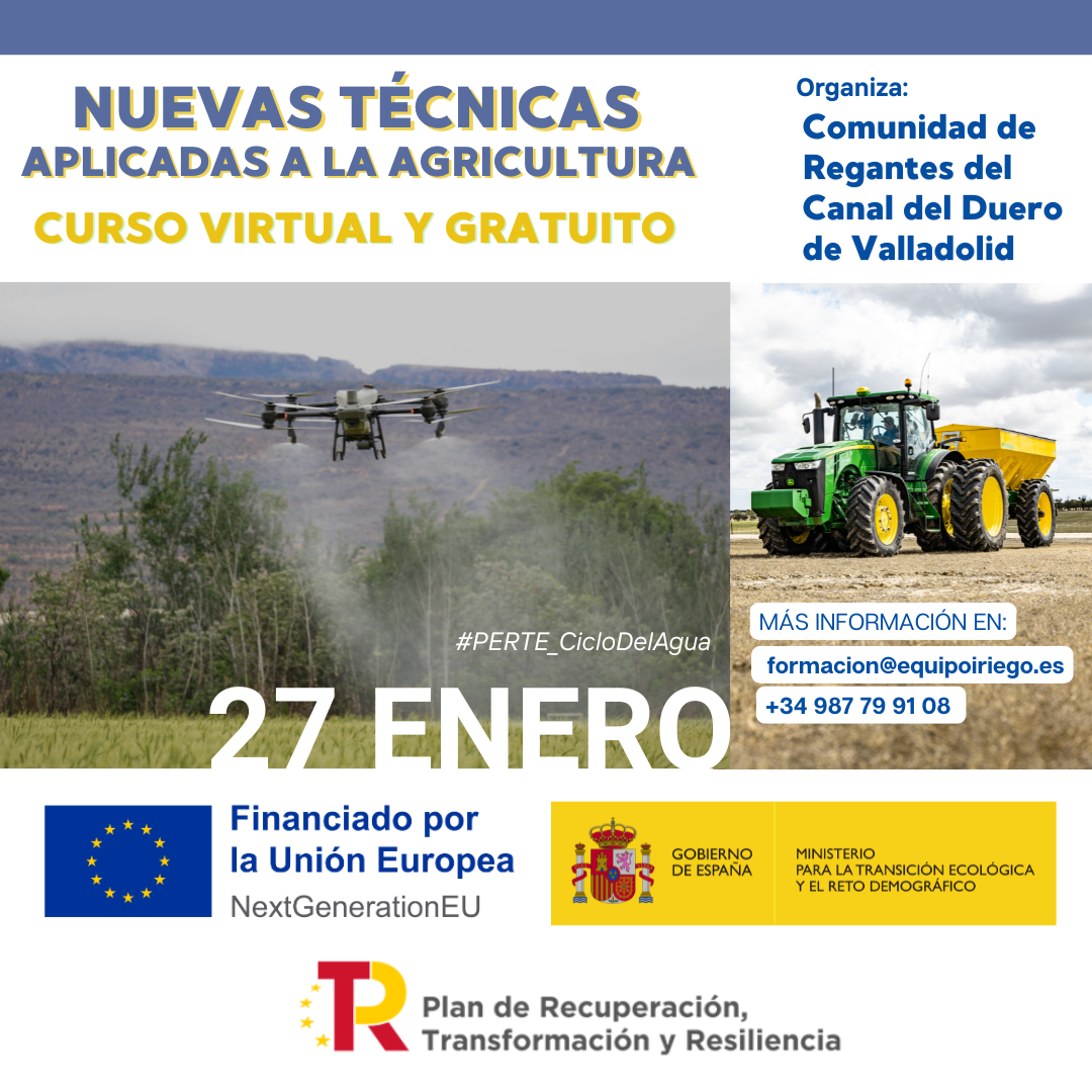 Curso formativo ‘Nuevas Técnicas aplicadas a la agricultura’. 16 de enero de 2026. Objetivos: Conocimientos sobre la gestión y uso eficiente del agua, buenas prácticas y estructura del regadío modernizado. Modalidad: Virtual y gratuito. Este curso se enmarca en las acciones del Plan de Recuperación, Transformación y Resiliencia, financiado por la Unión Europea- NextGenerationEU, y […]