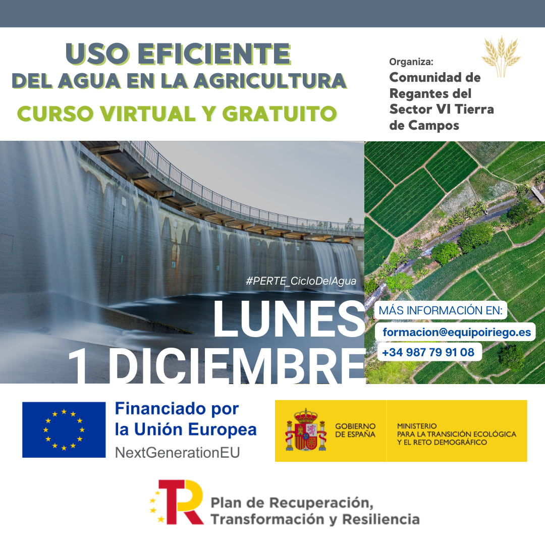 Curso formativo ‘Uso eficiente del agua en la agricultura’. 1 de diciembre de 2025. Objetivos: Conocimientos sobre la gestión y uso eficiente del agua, buenas prácticas y estructura del regadío modernizado. Modalidad: Virtual y gratuito. Este curso se enmarca en las acciones del Plan de Recuperación, Transformación y Resiliencia, financiado por la Unión Europea- NextGenerationEU, […]