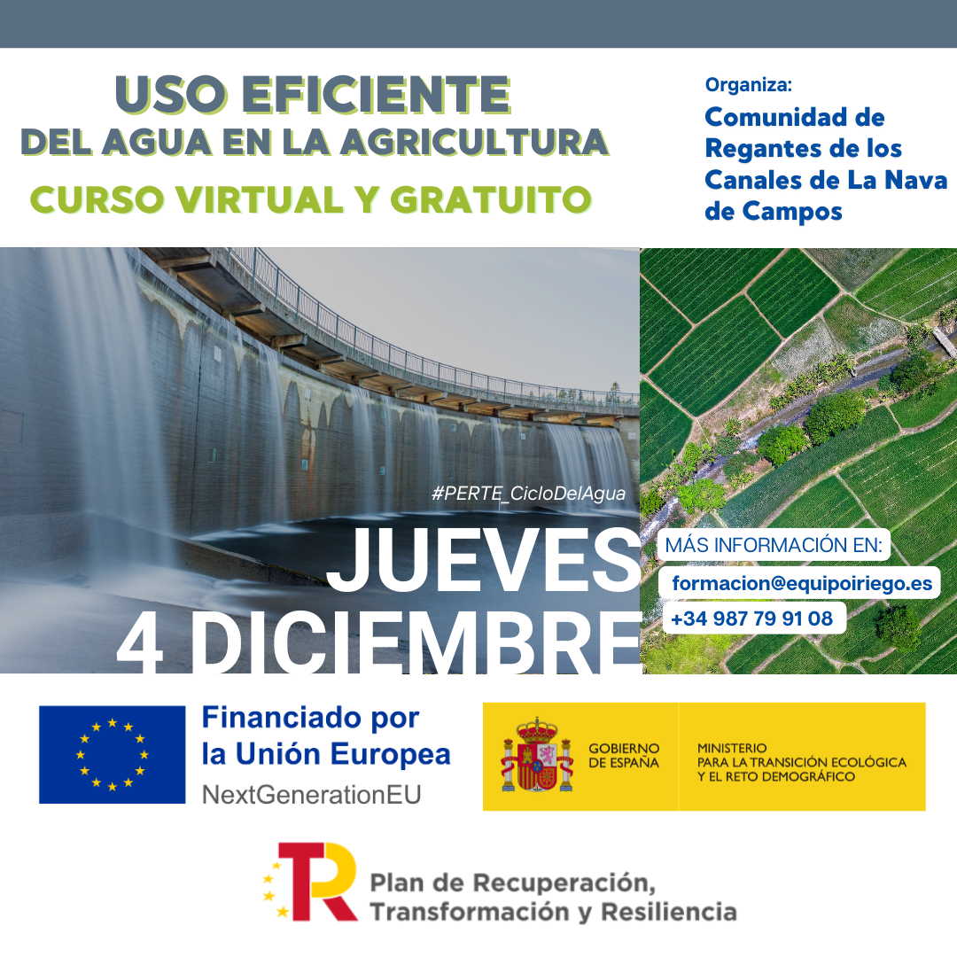 Curso formativo ‘Uso eficiente del agua en la agricultura’. 4 de diciembre de 2025. Objetivos: Conocimientos sobre la gestión y uso eficiente del agua, buenas prácticas y estructura del regadío modernizado. Modalidad: Virtual y gratuito. Este curso se enmarca en las acciones del Plan de Recuperación, Transformación y Resiliencia, financiado por la Unión Europea- NextGenerationEU, […]