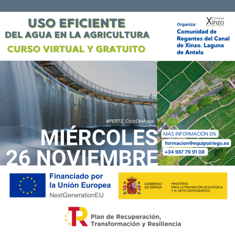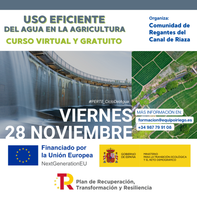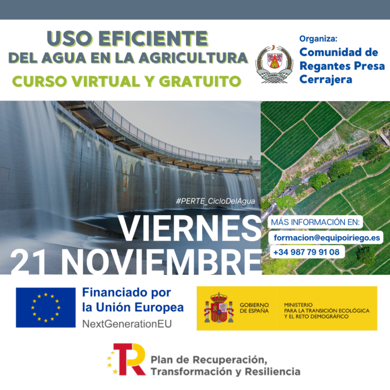 Curso formativo ‘Uso eficiente del agua en la agricultura’. 24 de noviembre de 2025. Objetivos: Conocimientos sobre la gestión y uso eficiente del agua, buenas prácticas y estructura del regadío modernizado. Modalidad: Virtual y gratuito. Este curso se enmarca en…