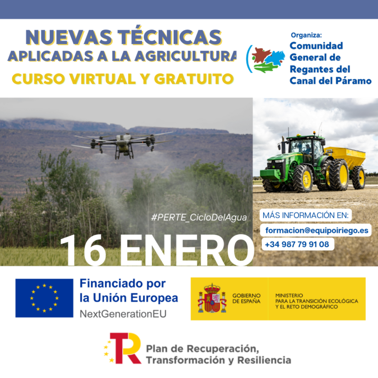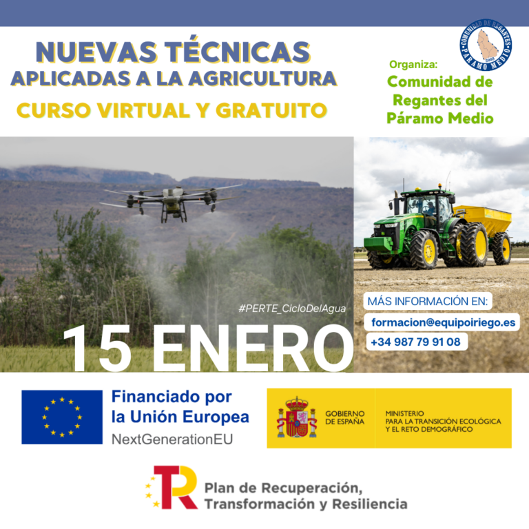 Curso formativo ‘Nuevas Técnicas aplicadas a la agricultura’. 16 de enero de 2026. Objetivos: Conocimientos sobre la gestión y uso eficiente del agua, buenas prácticas y estructura del regadío modernizado. Modalidad: Virtual y gratuito. Este curso se enmarca en las…