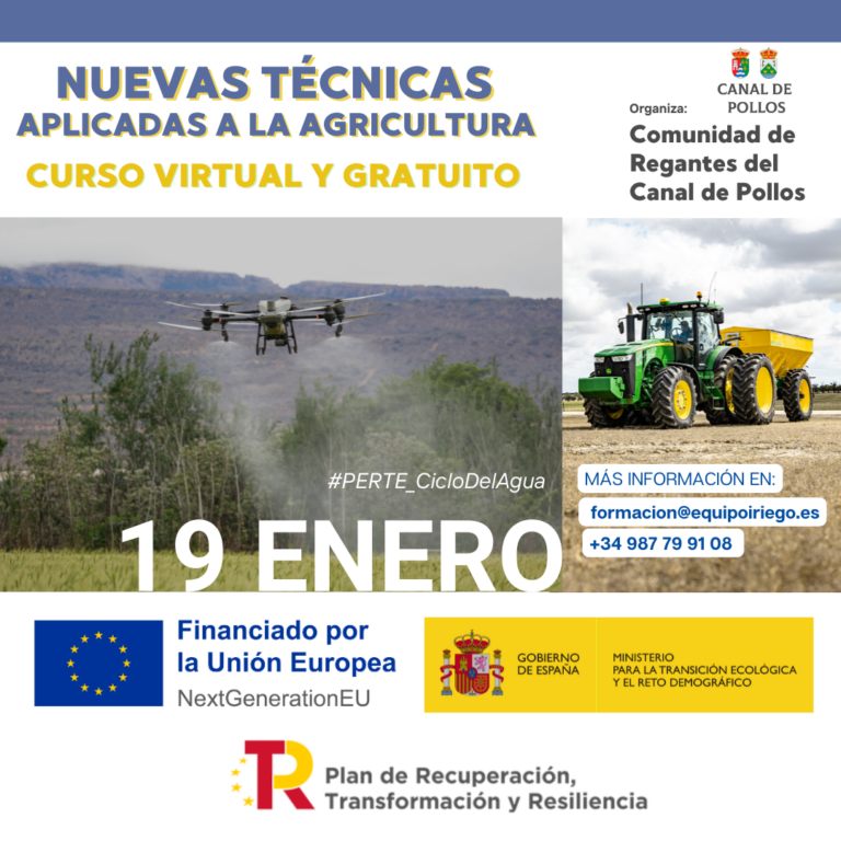 Curso formativo ‘Nuevas Técnicas aplicadas a la agricultura’. 19 de enero de 2026. Objetivos: Conocimientos sobre la gestión y uso eficiente del agua, buenas prácticas y estructura del regadío modernizado. Modalidad: Virtual y gratuito. Este curso se enmarca en las…