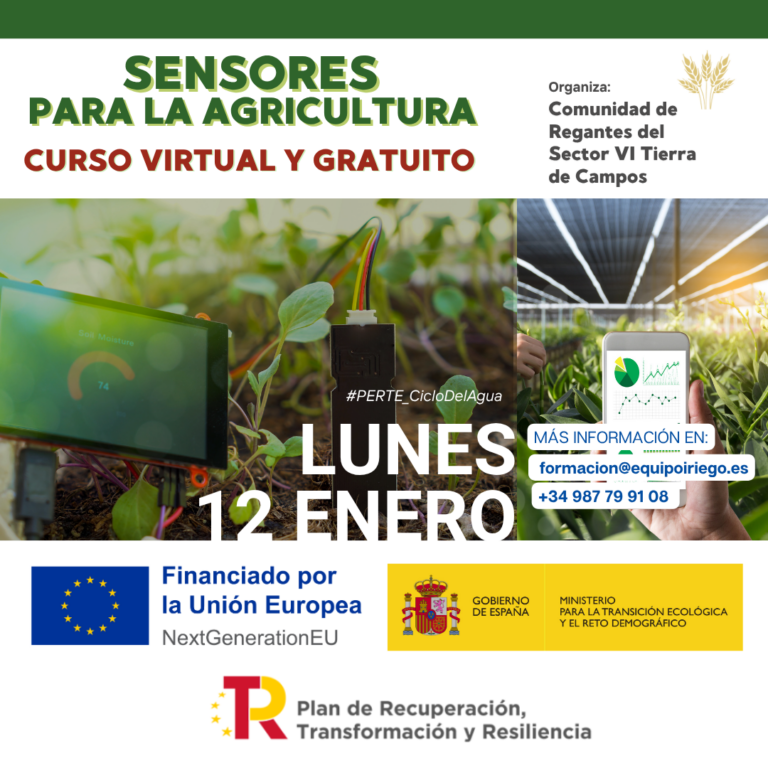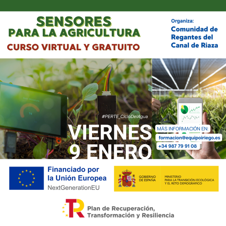 Curso formativo ‘Sensores para la agricultura’. 09 de enero de 2026. Objetivos: Conocimientos sobre la gestión y uso eficiente del agua, buenas prácticas y estructura del regadío modernizado. Modalidad: Virtual y gratuito. Este curso se enmarca en las acciones del…