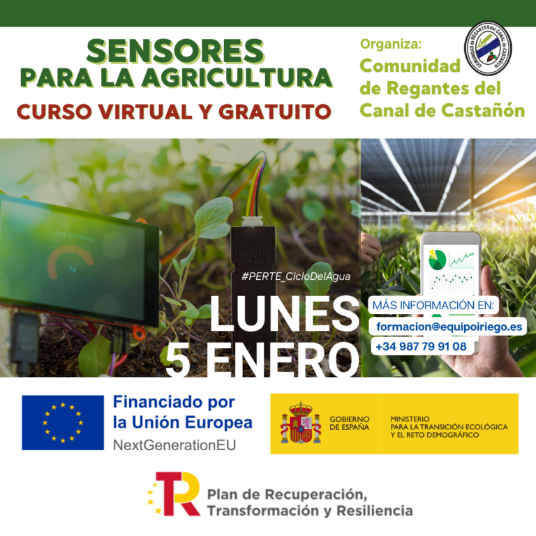Curso formativo ‘Sensores para la agricultura’. 05 de enero de 2026. Objetivos: Conocimientos sobre la gestión y uso eficiente del agua, buenas prácticas y estructura del regadío modernizado. Modalidad: Virtual y gratuito. Este curso se enmarca en las acciones del…