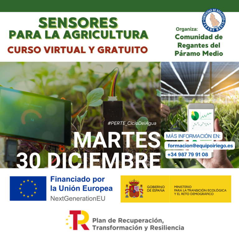 Curso formativo ‘Sensores para la agricultura’. 30 de diciembre de 2025. Objetivos: Conocimientos sobre la gestión y uso eficiente del agua, buenas prácticas y estructura del regadío modernizado. Modalidad: Virtual y gratuito. Este curso se enmarca en las acciones del…